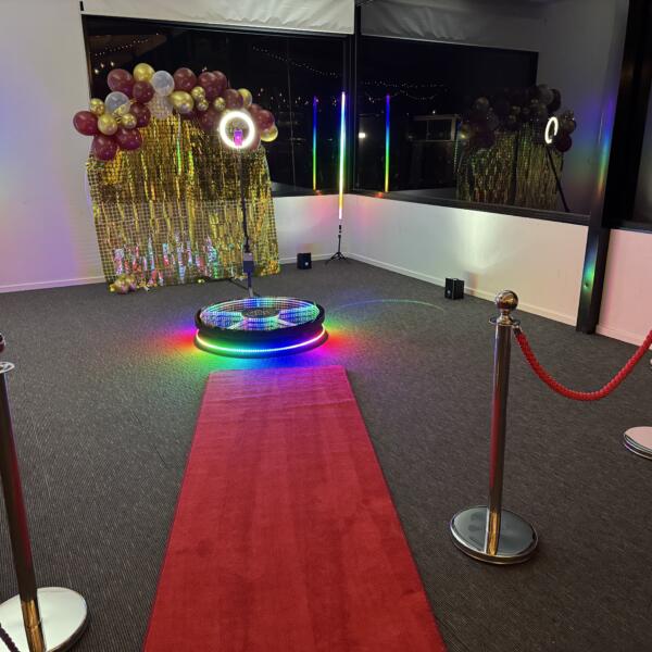 Capacity of 3-4 guests, the camera will rotate around and create a 15 second video clip that you can airdrop or email directly to your smart phone.